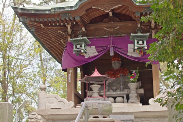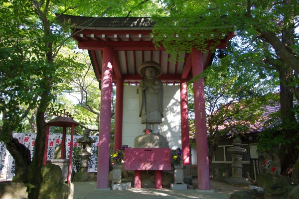 身の丈、十五尺の子供を抱いた石像のお大師さまで、安産祈願、子供の無事成長祈願を願う人多く、戦後は子授け祈願の信仰も増え、春秋の大祭には、「子福もち」のお接待がございます。