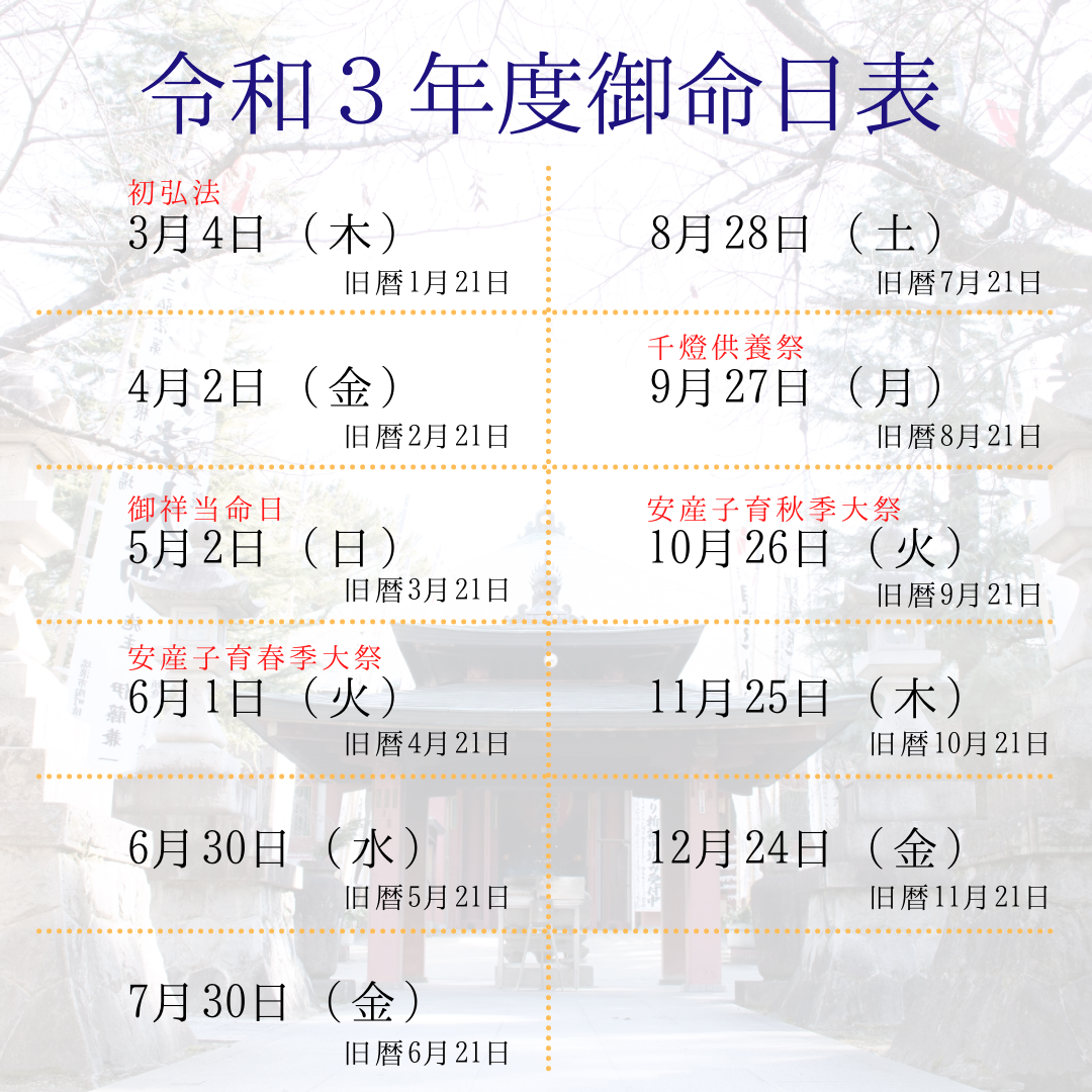 3月4日(旧暦1月21日)は、1年最初の「初弘法御命日」です。そのため今回は、「初大般若転読護摩祈祷」を併せて奉修します。