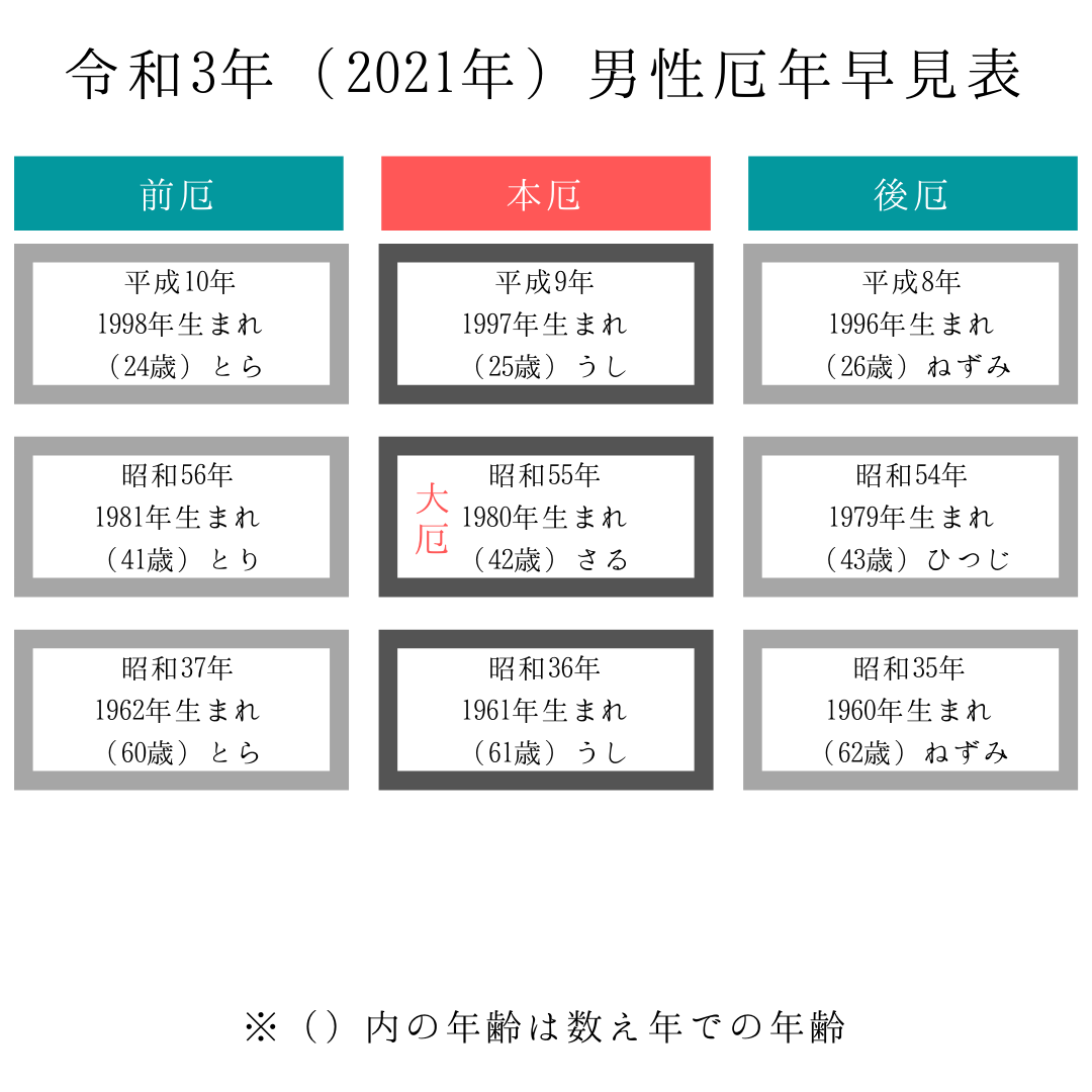特に厄年にあたる方は、本年の無事とご家族の安全のお祈りに、ぜひお参りください。